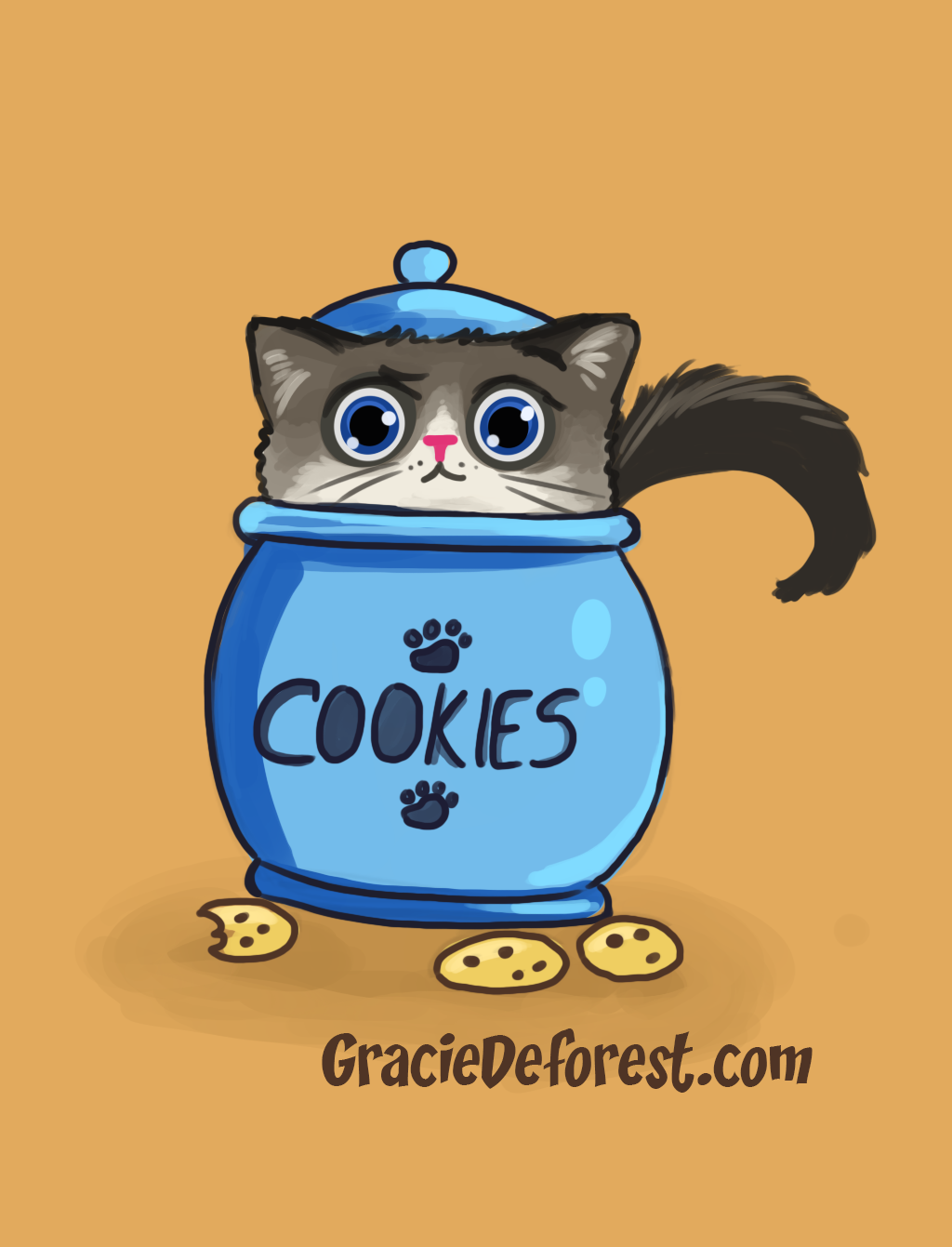 Chocolate chip cookies, double fudge cookies, peanut butter cookies; you name it cookies. Yeti gets the same feelings when he’s been hard at work proof reading, illustrating and making cover art; this is precisely where I found him today, when I went to get myself a – er, harry cookie.